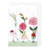 Die Doppelkarte Jubiläum stammt aus der künstlerischen Feder von Silke Leffler. Die Künstlerin zeichnete farbenfrohe Blumen und eine Reihe Gratulanten auf die Karte, die sie am Ende dezent mit Goldfolie versah. Ein passender Briefumschlag liegt der Grußkarte bei.