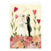 Die von Illustratorin Silke Leffler liebevoll gestaltete Doppelkarte mit Hochzeitsballon ist eine hinreißende Möglichkeit, Ihre Glückwünsche an das frischvermählte Brautpaar zu richten. Das Motiv der Hochzeitskarte zeigt einen wunderschönen, mit Rosen verzierten Heißluftballon, von dessen Korb aus Braut und Bräutigam ihren Gästen zuwinken. Für die farbliche Gestaltung wurden zarte Pastelltöne verwendet, die der Karte eine besonders romantische Stimmung verleihen.