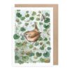 Die Doppelkarte Wiesengeschnatter aus der gleichnamigen Designserie der Künstlerin Sophia Drescher zeigt eine Vielzahl von Gänsen und Wildenten, die entweder geschäftig ihres Weges gehen, fasziniert Schmetterlinge beobachten oder sich lustige Partyhüte aufgesetzt haben. Ein passender Umschlag wird mitgeliefert.