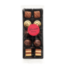 2x Mousse au Chocolat in Vollmilchschokolade, 2x Cointreau-Butter-Trüffel in weißer Schokolade, 2x Marc de Champagne Trüffel in weißer Schokolade, 2x Butter-Trüffel in Vollmilchschokolade, 2x Whisky-Trüffel in Zartbitterschokolade