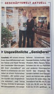 Wir sind Hazel und Tobias. Mit drei kleinen Kindern im Gepäck, haben wir im Oktober 2007 die Genießerei eröffnet.